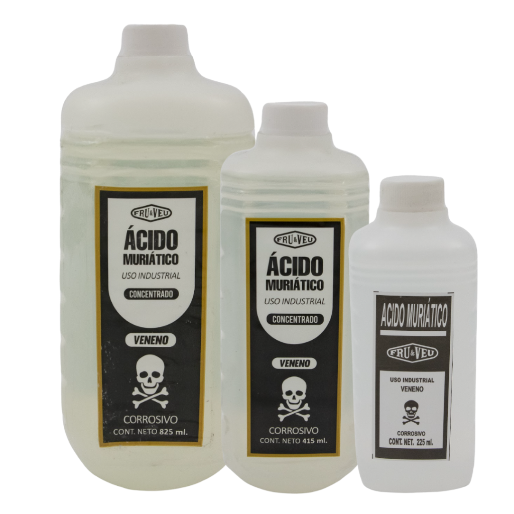 Líquido corrosivo, incoloro y ligeramente amarillento. Formulado a base de ácido muriático al 30%. Para uso industrial. Limpiador para pisos, baños, cocinas, servicios sanitarios, azulejos, tinas, manchas de óxido, concreto, provocadas por el agua o la formación de sarro.